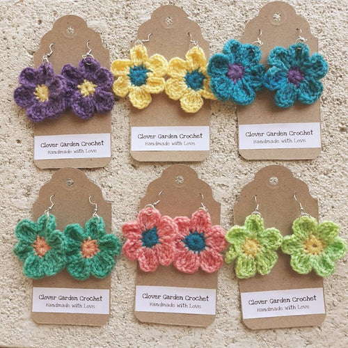 Bright Colorful Daisy Flower Crochet Drop Earrings